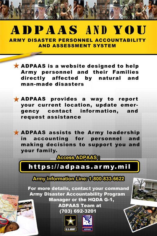 Army Disaster Personnel Accountability and Assessment System (ADPAAS) Poster